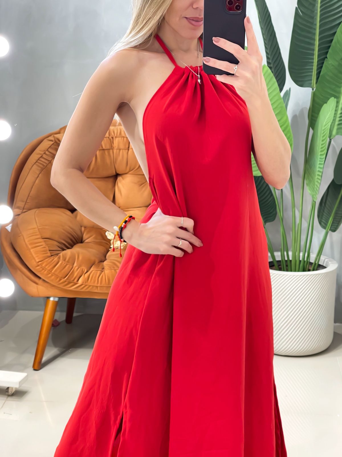 👗 Vestido Longo em Duna – Frente Única e Costas Nuas